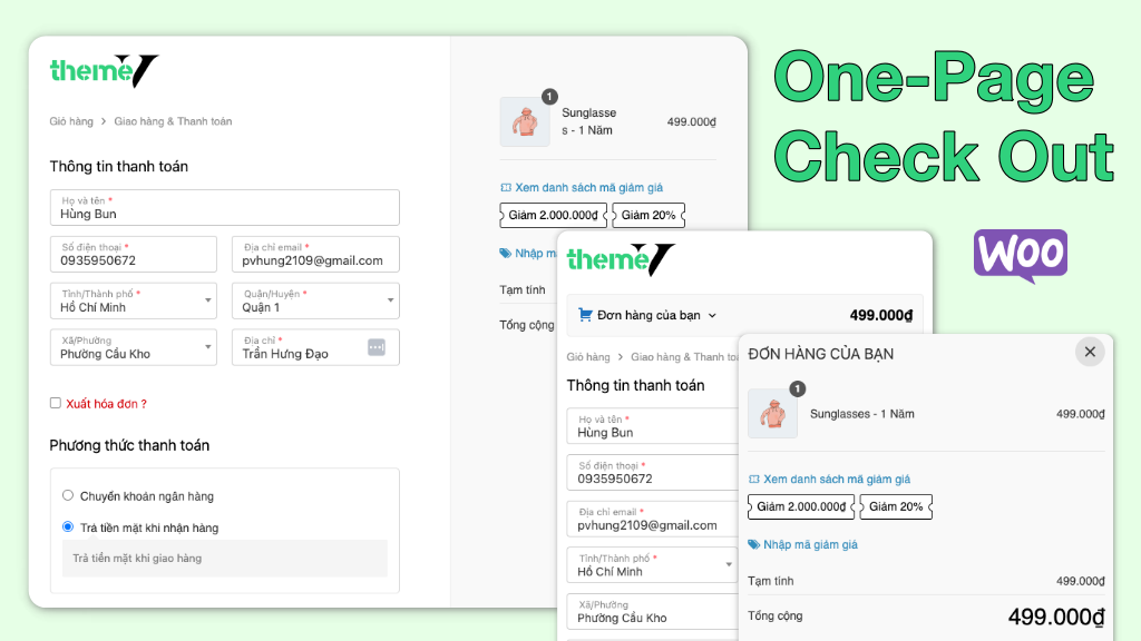 - Onpage: Các thông tin mua hàng, giao hàng, phương thức giao hàng hoặc thanh toán được người mua hàng nhập & chọn nhanh trên một trang nội dung thông tin.